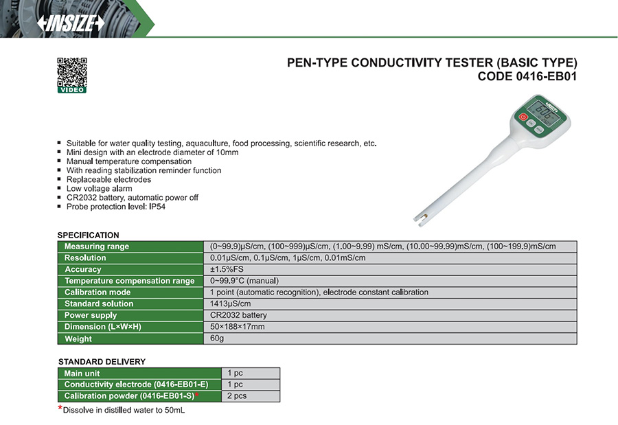| 0416-EB01 | conductivity/TDS | off-line | (0~99.9)μS/cm, (100~999)μS/cm, (1.00~9.99) mS/cm, (10.00~99.99)mS/cm, (100~199.9)mS/cm | no |