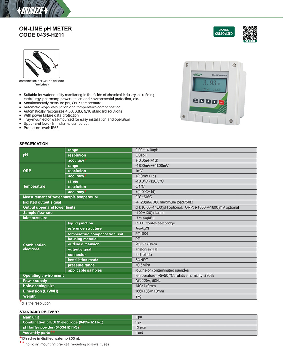| 0435-HZ11 | pH/mV | on-line | 0.00~14.00pH, -1800mV~+1800mV, -10.0°C~120.0°C | yes |