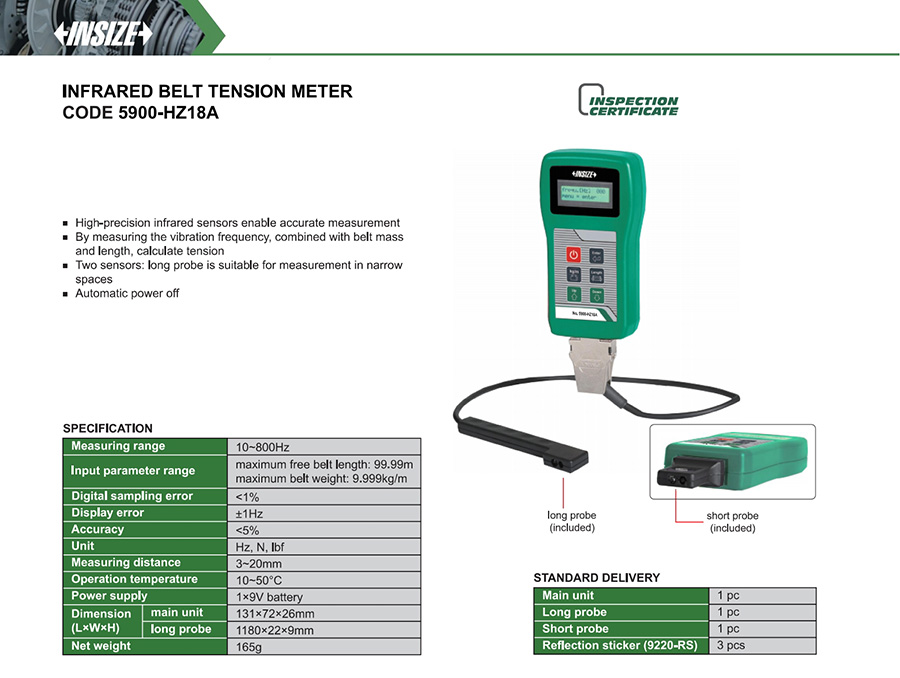 By measuring the vibration frequency, combined with belt mass and length, calculate tension