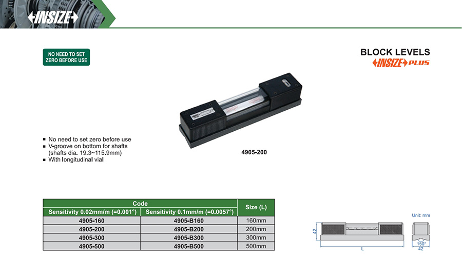 | 4905-B200 | 200mm | 0.1mm/m (=0.0057°) |