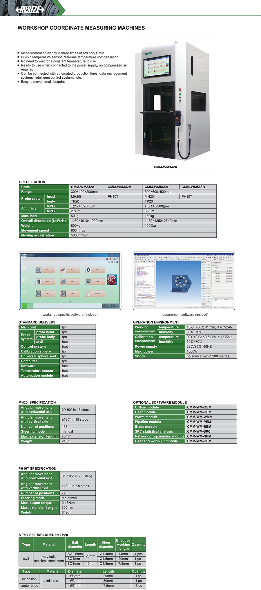 | CMM-WM342B | MPEE ±(2.7+L/200)μm, MPEP 2.8μm | 860mm/s | 5000mm/s² |