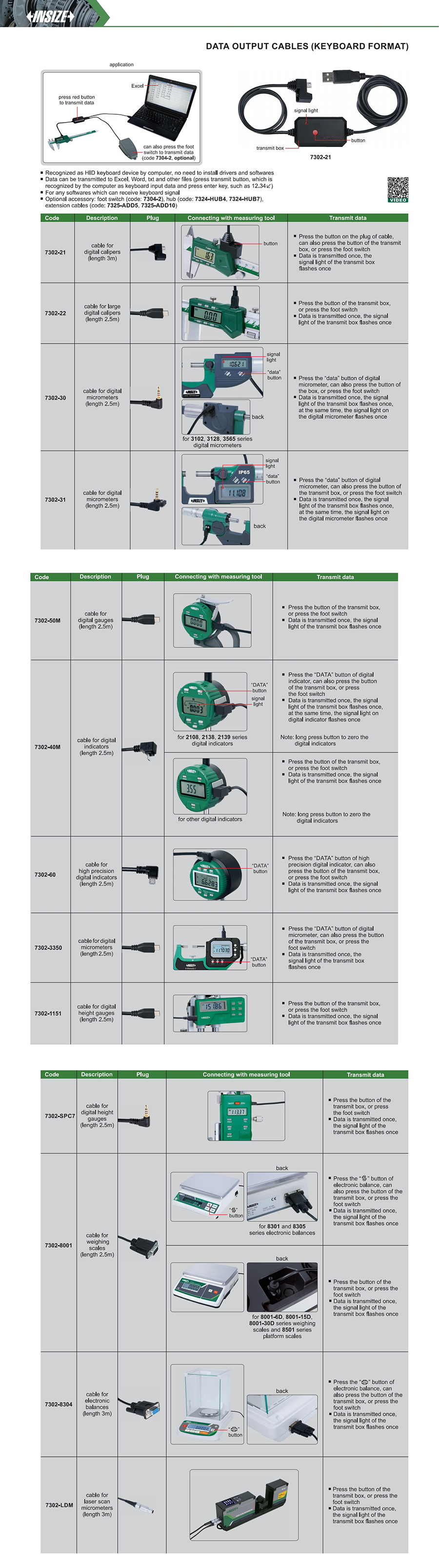 | 7302-31 | cable for digital micrometers (length 2.5m) |
