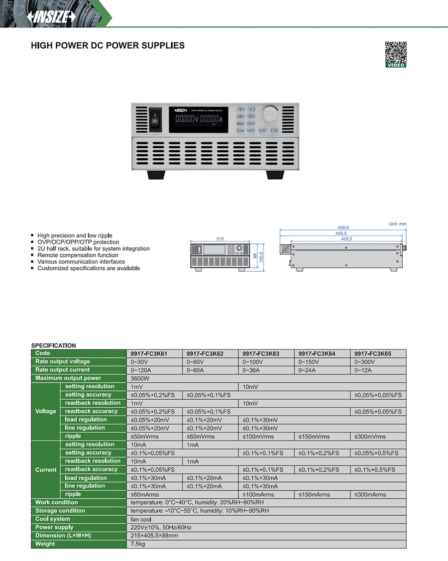 | 9917-FC3K65 | 0~300V | 0~12A | 3600W |