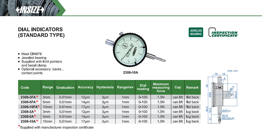 | 2308-10A | 10mm | 17µm | 0.01mm |