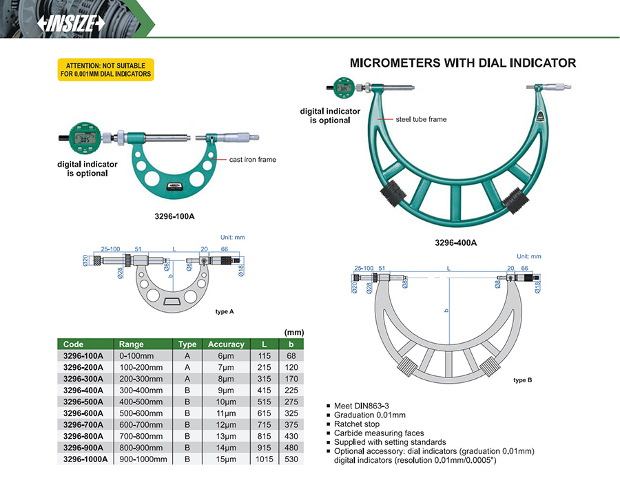 | 3296-100A | 0-100mm | 6μm | 0.01mm |