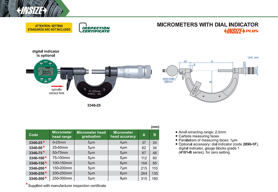 | 3346-25 | 0-25mm | 4μm | 5μm |