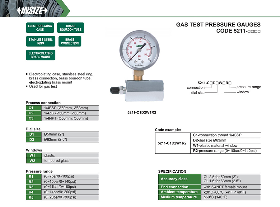 | 5211 | 1/4BSP, 1/4ZG, 1/4NPT | Ø50mm, Ø63mm | bottom | plastic, tempered glass |