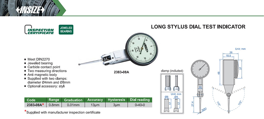 | 2383-08A | 0.8mm | 13µm | 0.01mm |