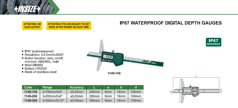 | 1149-150 | 0-150mm/0-6" | ±0.03mm | 0.01mm/0.0005" | without data interface |