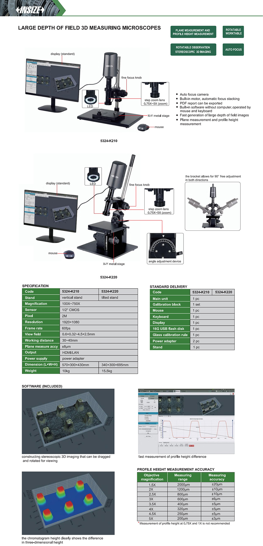 | 5324-K220 | large depth of field 3D measuring microscopes | 100~750X | 0.6x0.32~4.5x2.5mm | 2M |