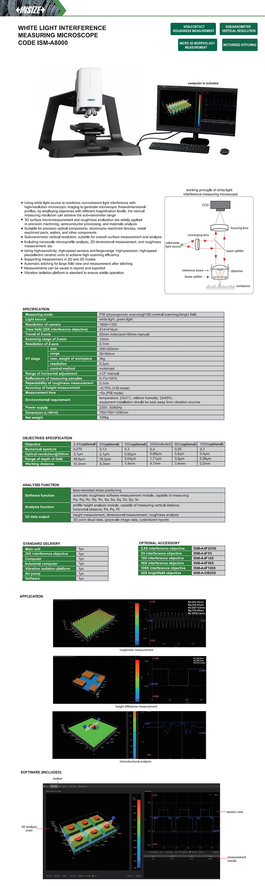 | ISM-A8000 | white light interference measuring microscope | 414μm×414μm (20X interference objective) | 1600×1100 |
