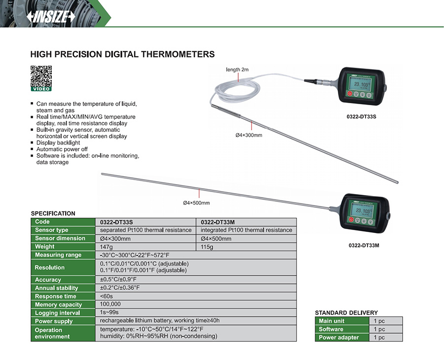 | 0322-DT33M | platinum resistor | ±0.5°C/±0.9°F | 1 | yes | -30°C~300°C/-22°F~572°F |