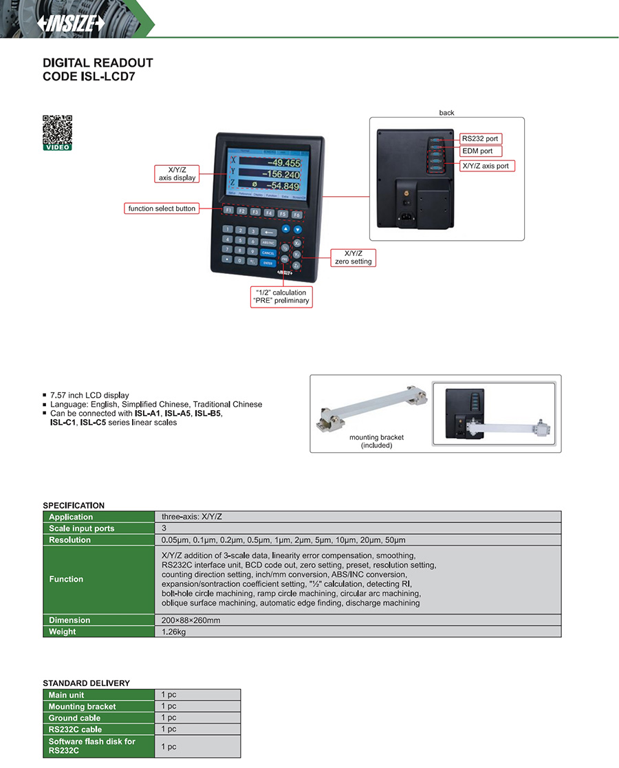 Can be connected with ISL-A1, ISL-A5, ISL-B5, ISL-C1, ISL-C5 series linear scales