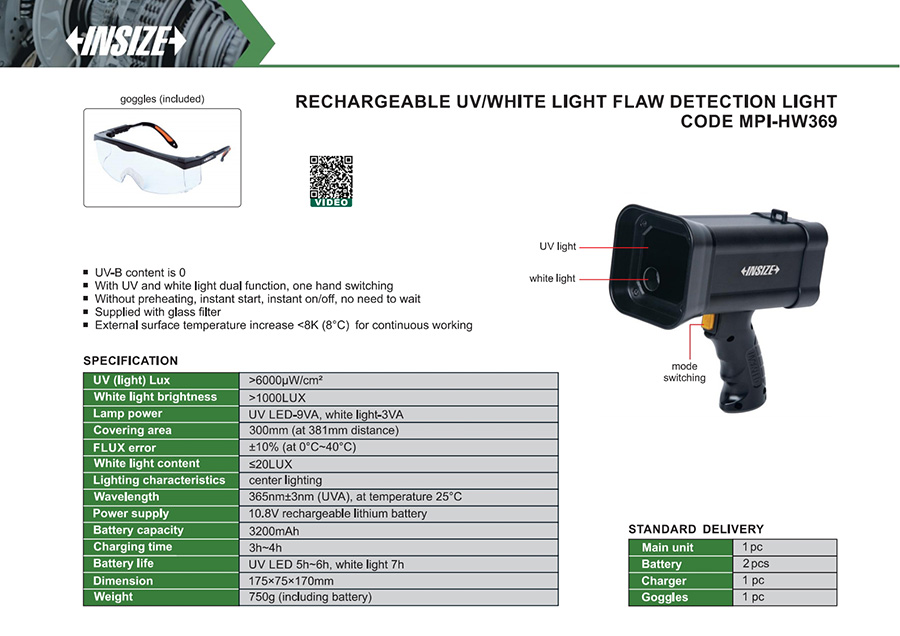 | MPI-HW369 | >6000µW/cm² | 365nm±3nm (UVA), at temperature 25°С | UV LED-9VA, white light-3VA | 300mm (at 381mm distance) | ±10% (at 0°С~40°С) | center lighting |