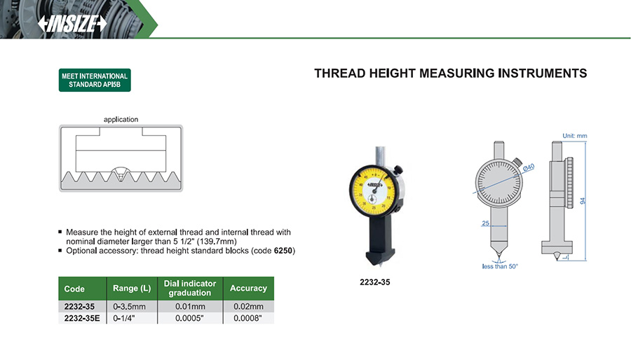 | 2232-35 | 0-3.5mm | 0.02mm | 0.01mm | thread height |