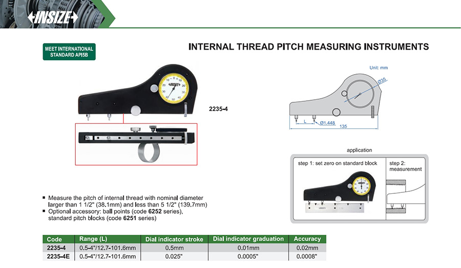 | 2235-4 | 0.5-4"/12.7-101.6mm | 0.02mm | 0.01mm | lead |