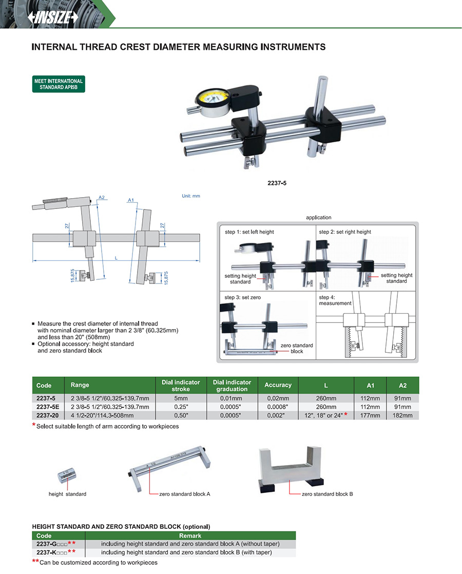| 2237-5 | 2 3/8-5 1/2"/60.325-139.7mm | 0.02mm | 0.01mm | crest diameter |
