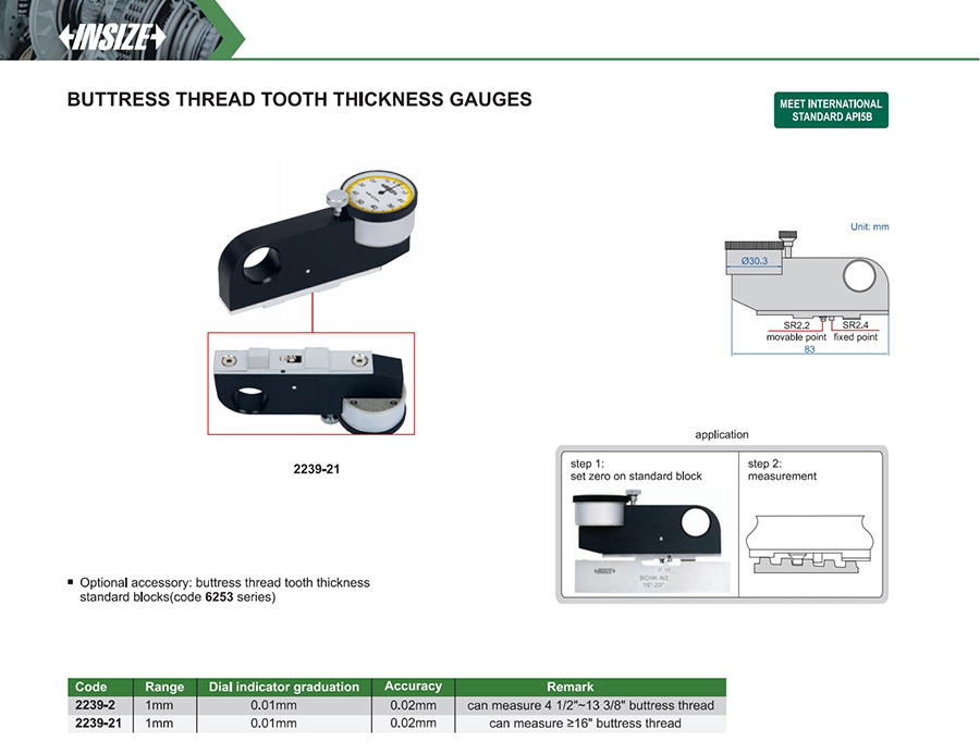 | 2239-2 | 1mm | 0.02mm | 0.01mm | buttress tooth width |