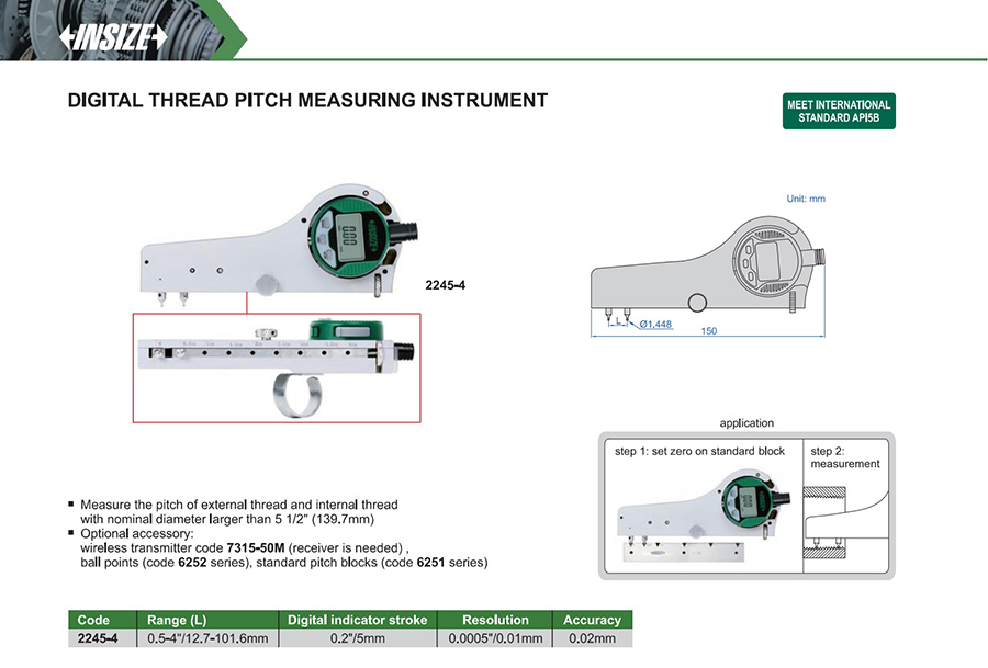 | 2245-4 | 0.5-4"/12.7-101.6mm | 0.02mm | 0.0005"/0.01mm | lead |