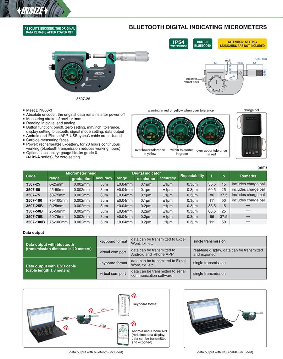 | 3507-75 | 50-75mm | 0.002mm | 0.1μm | ±0.04mm |