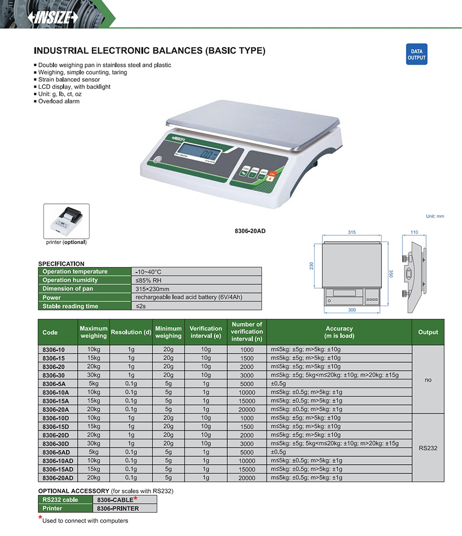| 8306-20 | 20000g | 1g | 315×230mm |