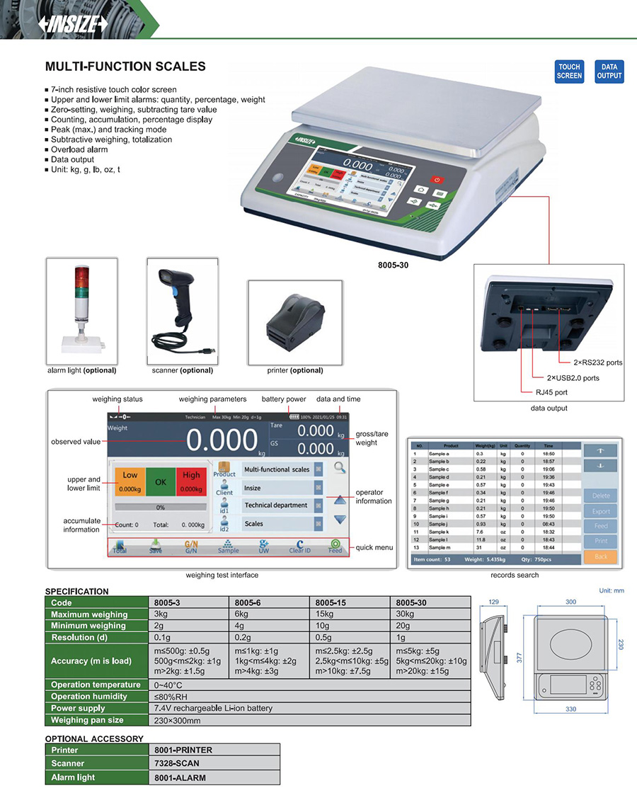 | 8005-30 | 30kg | 1g | 300×230mm |