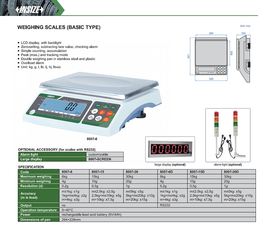 | 8007-30 | 30kg | 1g | 294×228mm |