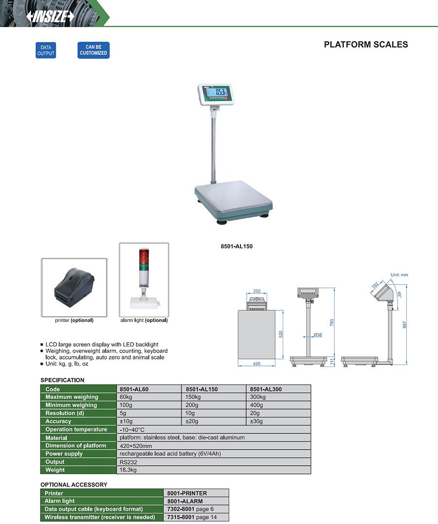 | 8501-AL300 | 300kg | 20g | 520×420mm |