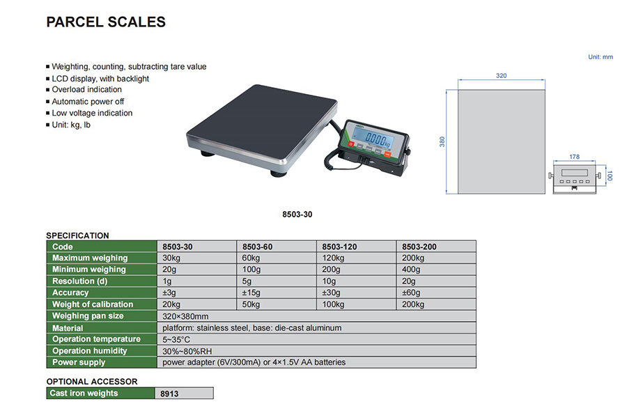 | 8503-30 | 30kg | 1g | 380×320mm |