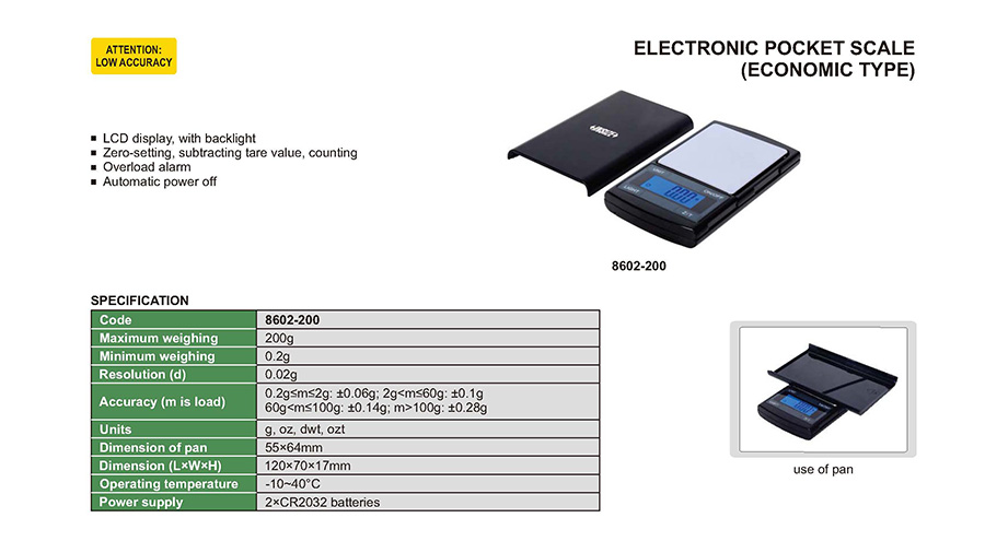 | 8602-200 | 200g | 0.02g | 55×64mm |