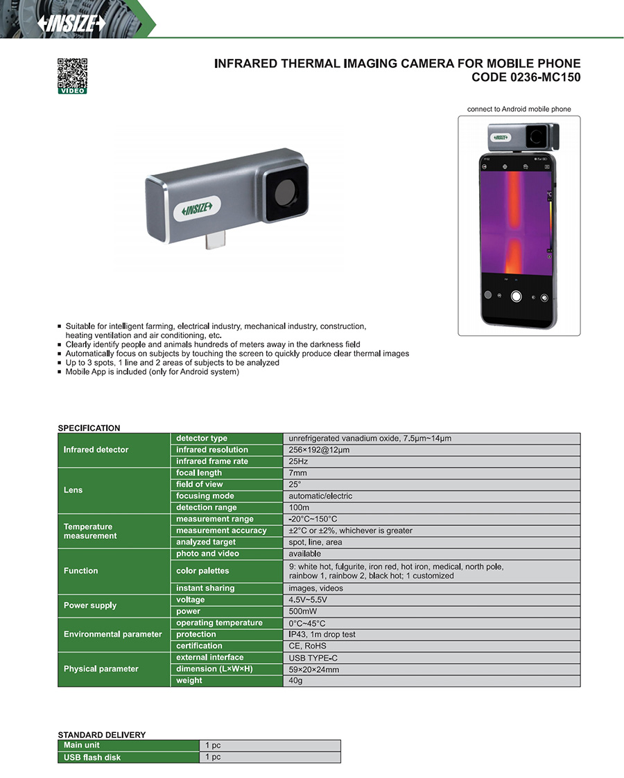 | 0236-MC150 | -20°C~150°C | 256×192@12µm | automatic/electric | no |