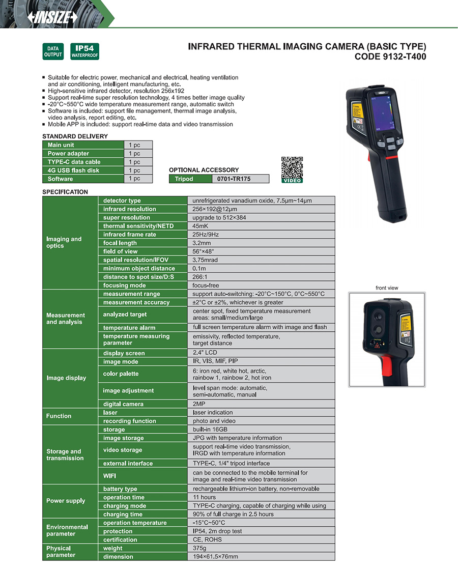 | 9132-T400 | support auto-switching:-20°C~150°C, 0°C~550°C | 256×192@12µm | focus-free | yes |