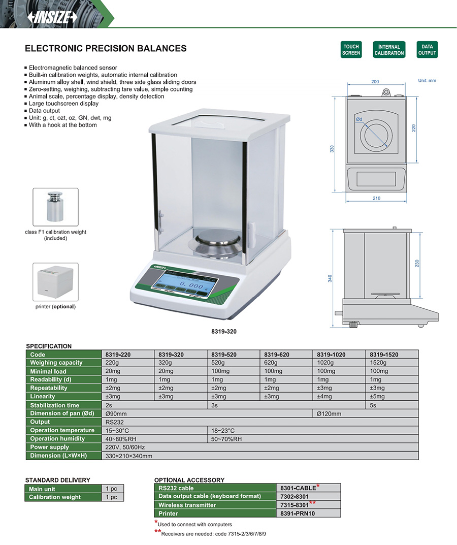 | 8319-220 | 220g | 0.001g | yes | Ø90mm |