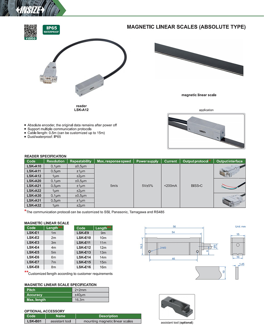 | LSK-A20 | magnetic linear | 0.1µm | ±0.5µm | direct lead-out |