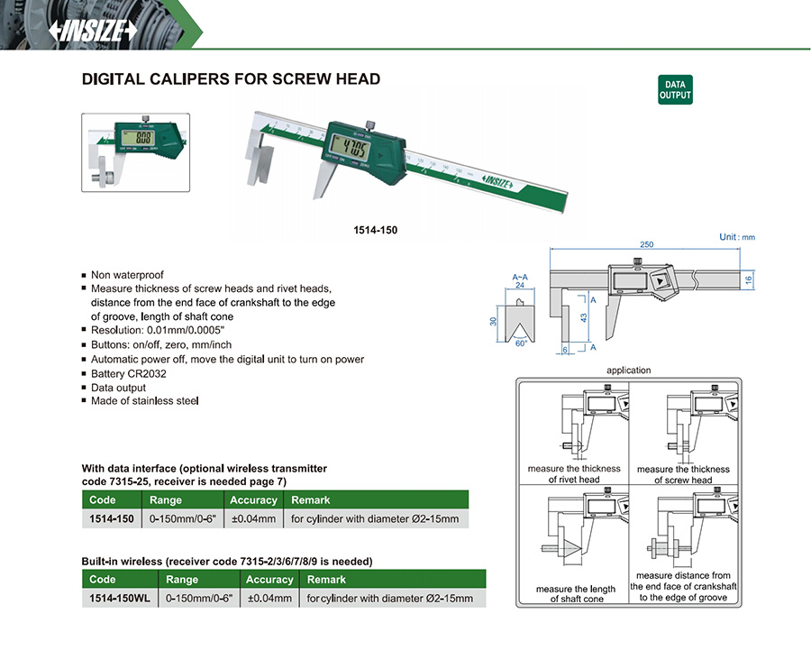 1514-150WL 0-150mm/0-6" ±0.04mm 0.01mm/0.0005"