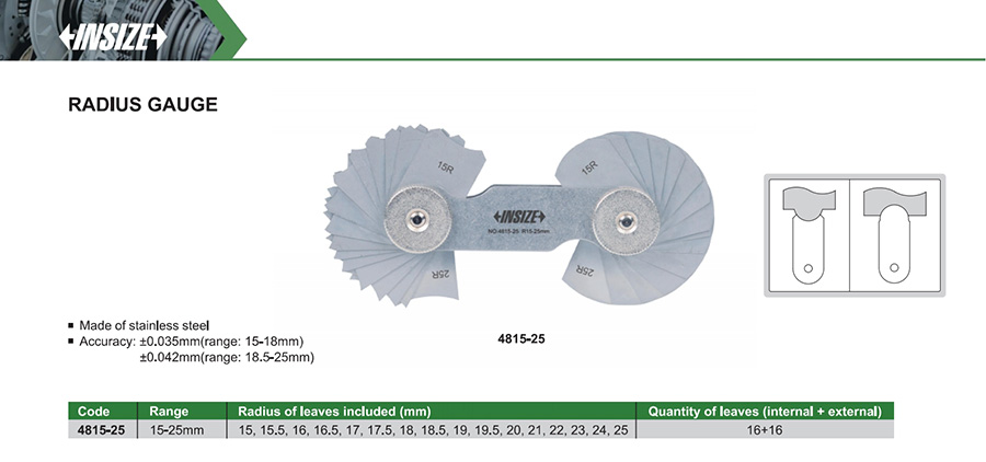 | 4815-25 | 15-25mm | 15, 15.5, 16, 16.5, 17, 17.5, 18, 18.5, 19, 19.5, 20, 21, 22, 23, 24, 25 |