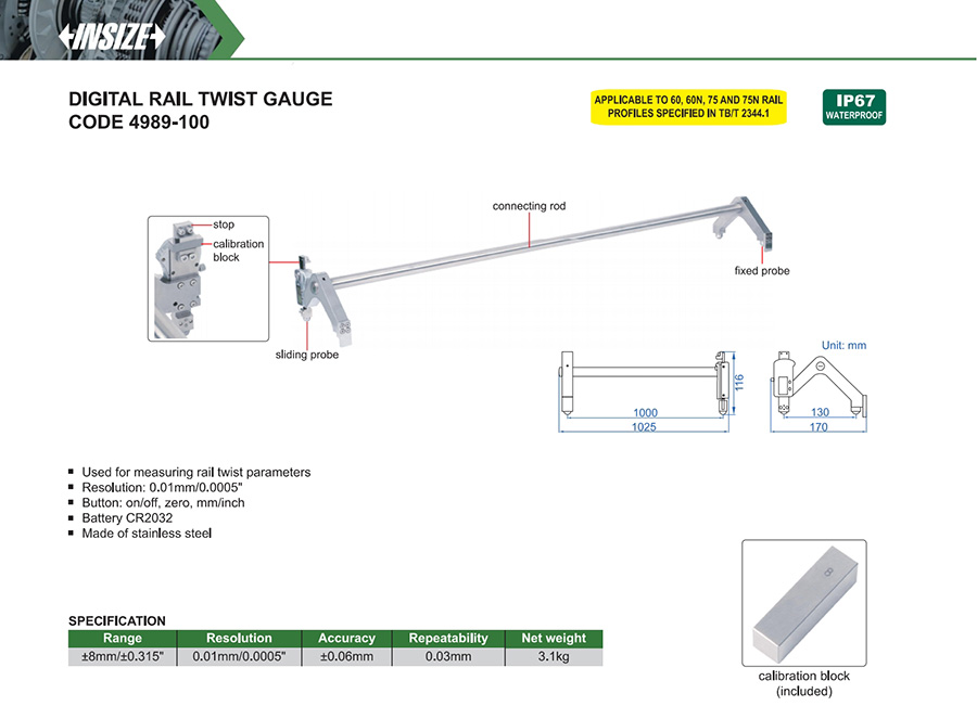 | 4989-100 | ±8mm/±0.315" | ±0.06mm | 0.01mm/0.0005" | 0.03mm |