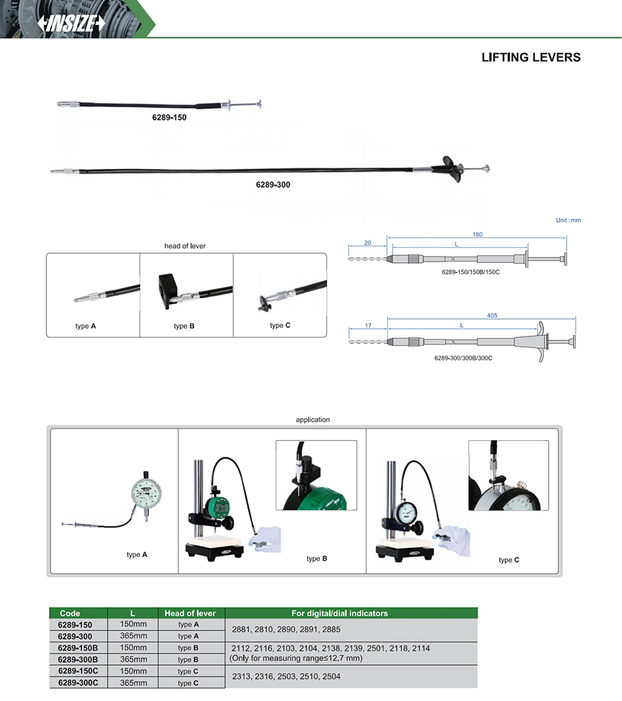 | 6289-150B | 150mm | 2112, 2116, 2103, 2104, 2138, 2139, 2501, 2118, 2114 (Only for measuring range≤12.7 mm) |