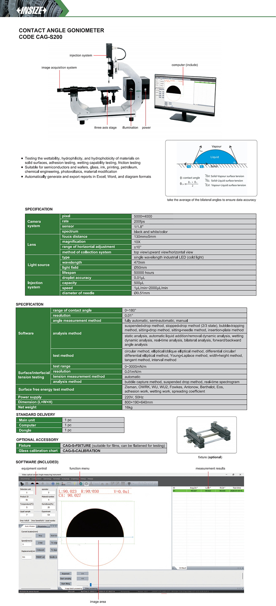 Testing the wettability, hydrophilicity, and hydrophobicity of materials on solid surfaces, adhesion testing, wetting capability testing, friction testing
