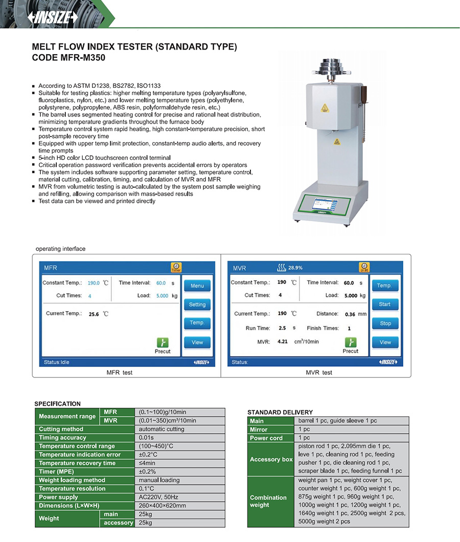 MFR-M350 MFR (0.1~100)g/10min, MVR (0.01~350)cm³/10min (100~450)°C