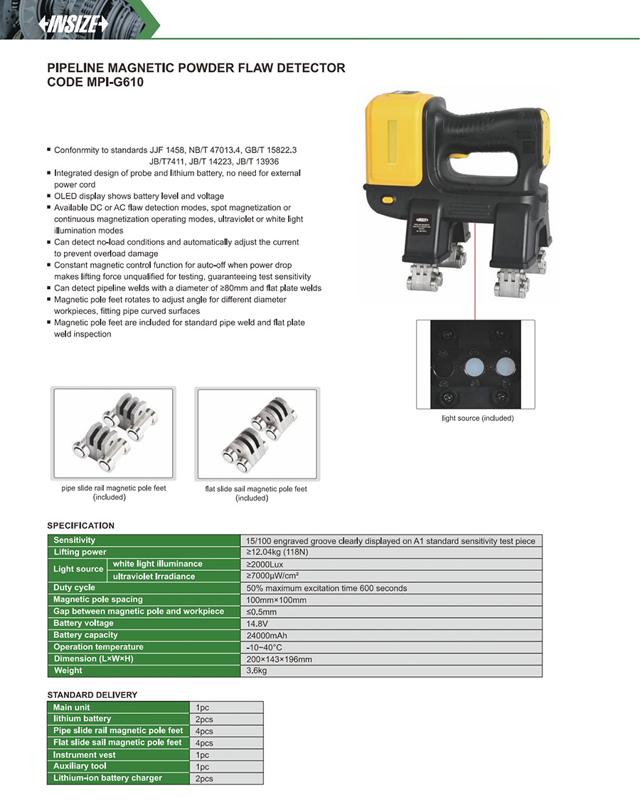 | MPI-G610 | 15/100 engraved groove clearly displayed on A1 standard sensitivity test piece | ≥12.04kg (118N) | 100mm×100mm |
