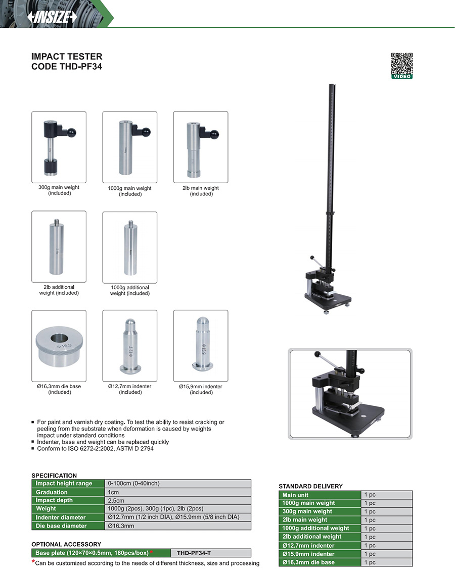 | THD-PF34 | 1000g (2pcs), 300g (1pc), 2lb (2pcs) | 0-100cm (0-40inch) | Ø12.7mm (1/2 inch DIA), Ø15.9mm (5/8 inch DIA) |
