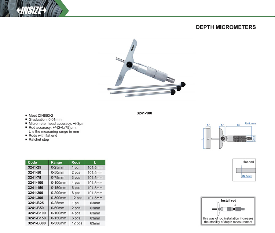 | 3241-100 | 0-100mm | 0.01mm | 101.5mm |