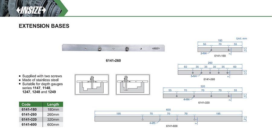 Suitable for depth gauges series 1147, 1148, 1247, 1248 and 1249