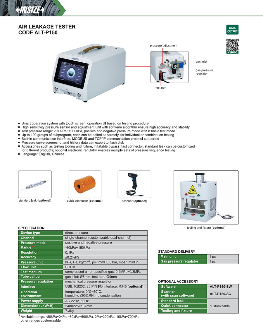 Test pressure range: -100kPa~1000kPa, positive and negative pressure mode with 8 basic test mode