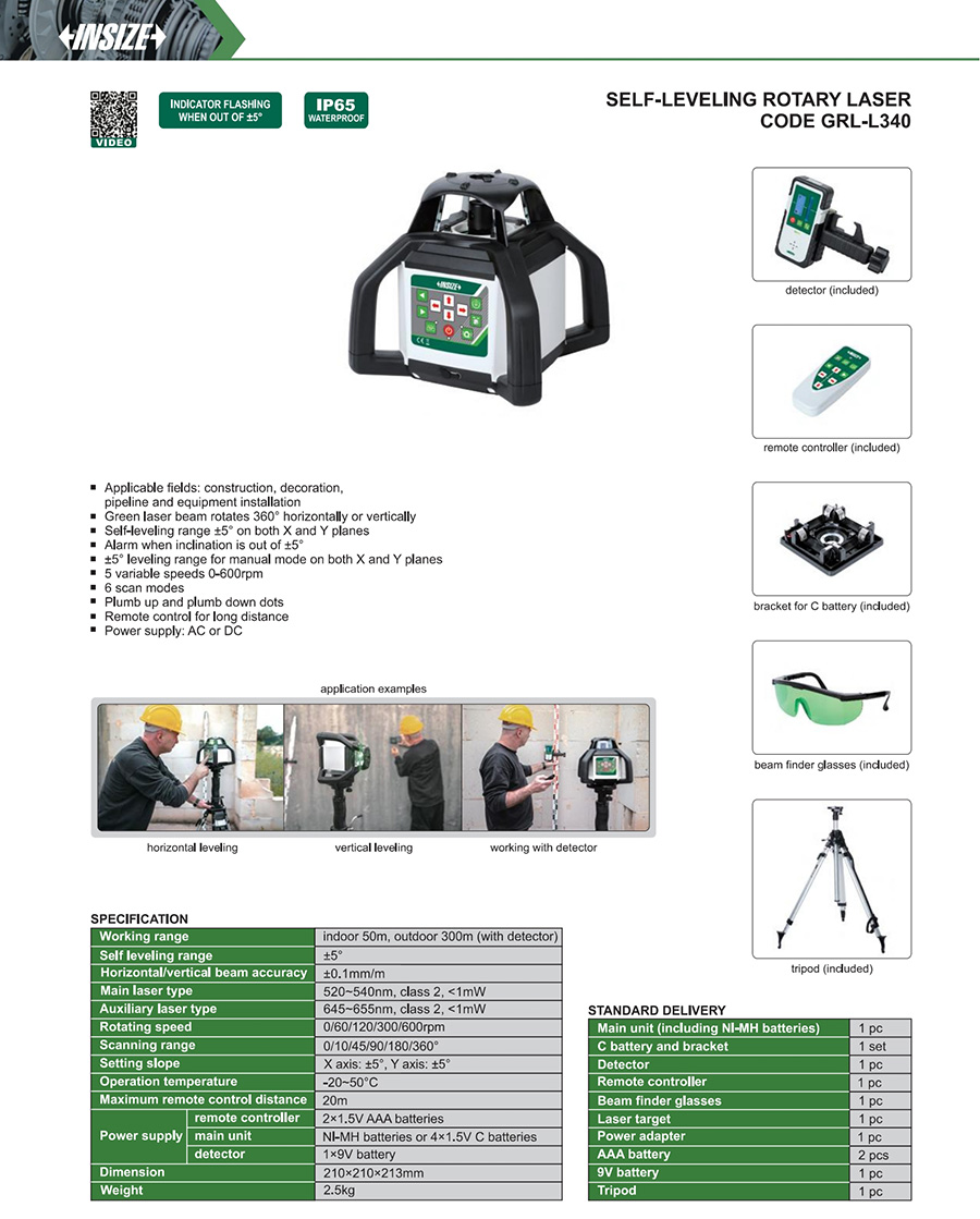 | GRL-L340 | ±0.1mm/m | -20~50°C | indoor 50m, outdoor 300m (with detector) | ±5° |