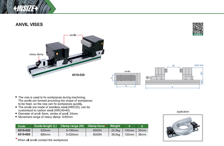 The anvils are formed according the shape of workpieces to be fixed, so the vise can fix workpieces quickly.