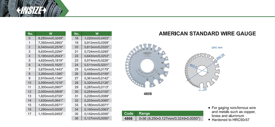 For gaging non-ferrous wire and metals such as copper, brass and aluminum