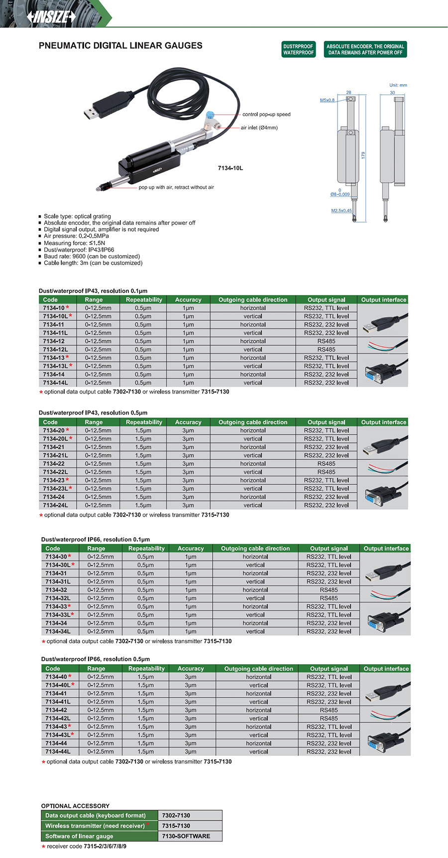 | 7134-31 | optical grating | 0-12.5mm | 1µm | RS232, 232 level | horizontal |