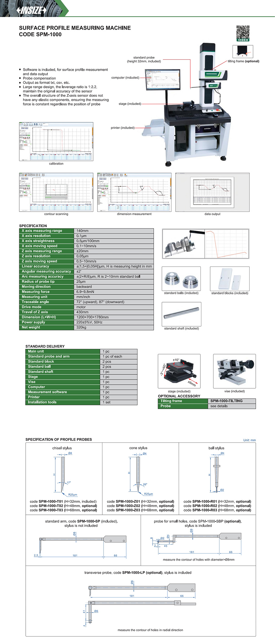| Code | X axis measuring range | Z axis measuring range | Travel of Z axis | Roughness |